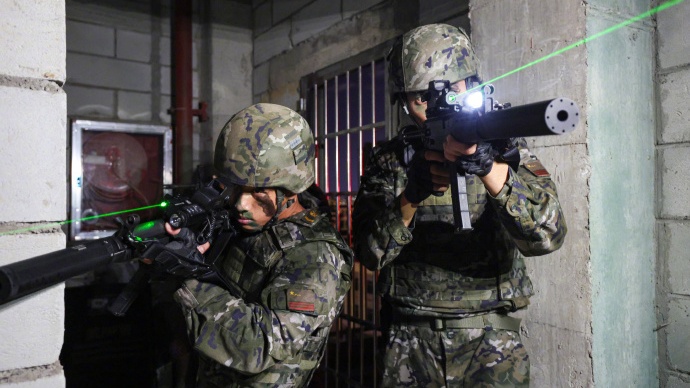 地练武警兵中官兵朝天热火