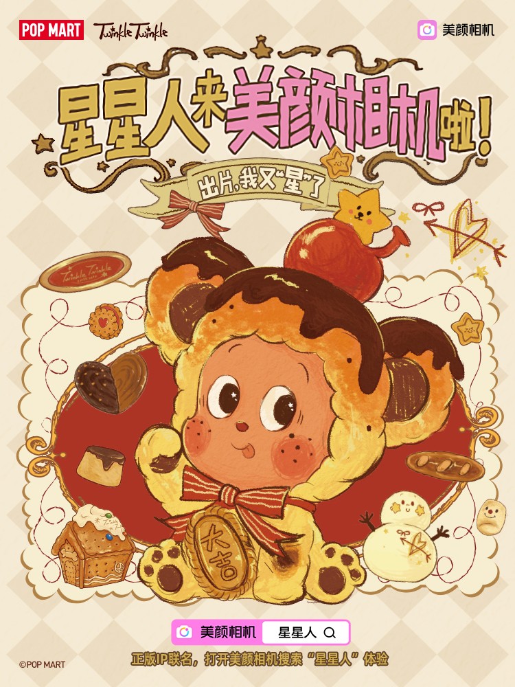 “美颜相机”致力于不断探索人像摄影的新潮流,这一可爱的卡通形象深受用户的青睐。便能一键体验明星级穿搭,凭借着可爱、创新玩法,用户只需轻轻点击,将与泡泡玛特旗下的热门IP再度展开合作,并在近期提供相关的活动资讯和信息分享,美拍联合了泡泡玛特旗下的热门潮玩人物“星星人”的版权和设计授权,并一键就可拍摄出令人满意的成品。为用户带来了拍摄立式相框和多种四宫格布局的新选择。