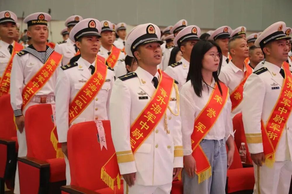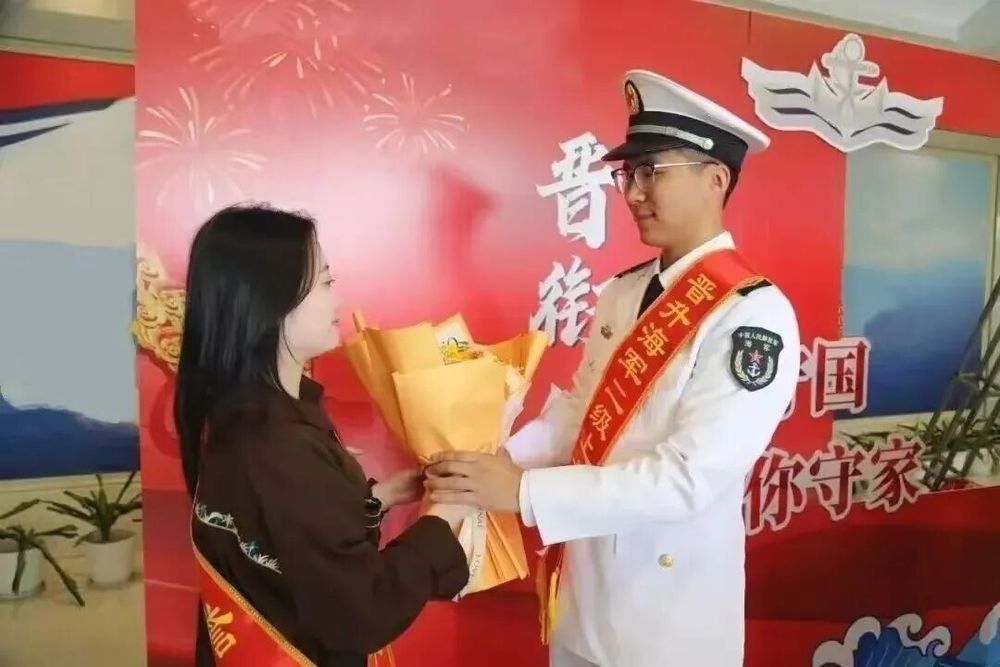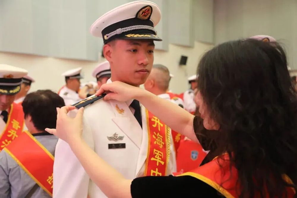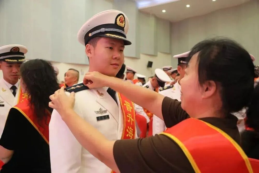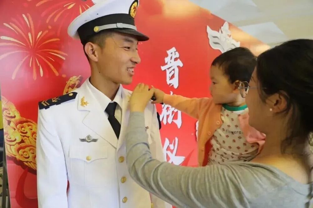 亲自给晋升军衔的升军士兵佩戴军衔。