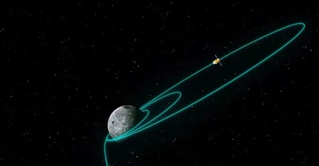 嫦娥六号探测器的不同时期环月椭圆形轨道示意图