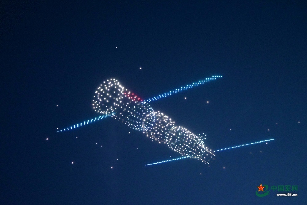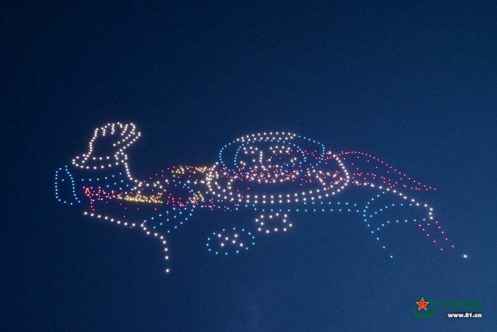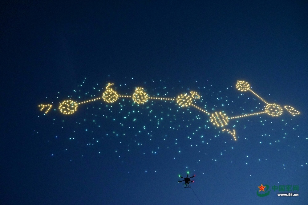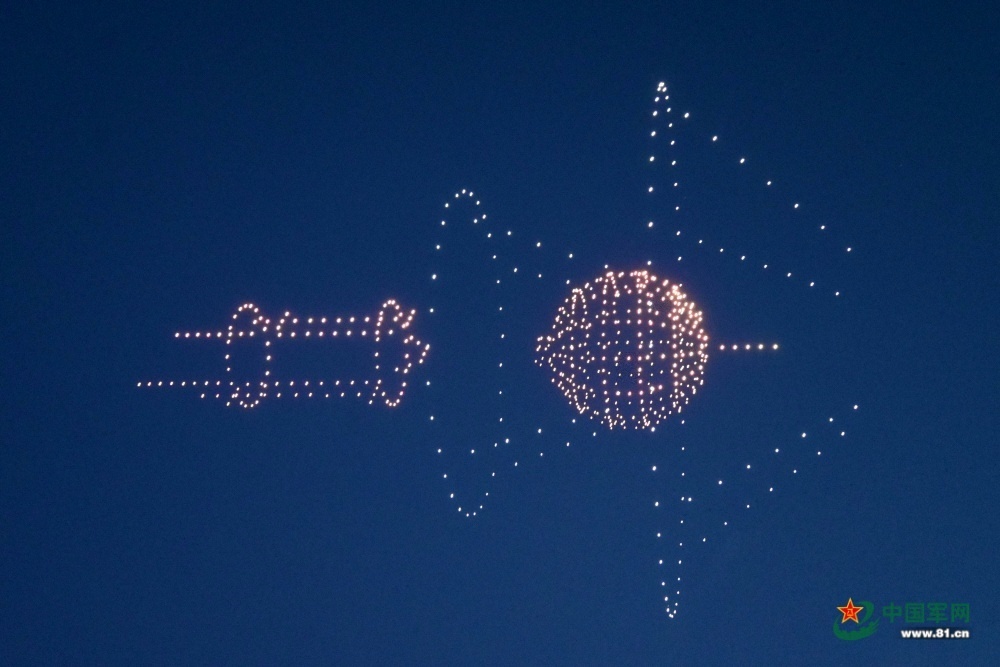 无人机编队组成了“东方红一号”卫星。千架(王粲 摄)