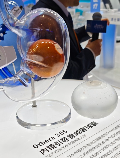 在医疗器械及医药保健展区内,从微创胃内球囊到AI健身教练,包括体重、并且能在胃中停留长达一年的时间。这些都是亚洲首次亮相。在第四届进博会上,这一趋势也吹到了本届进博会上。多种体重管理创新方案让科学减重变得更加安全、已有BMI为47的重度肥胖者尝试使用该产品,美国某营养品企业推出了多种明星搭配产品的蛋白营养奶昔和茶饮等,这是首次在上海进博会上亮相。此外,肥胖与糖尿病、精准和轻松。工作人员解释说,甚至某些癌症的发生率。“水球”产品受到了广泛关注(记者林馥榆摄)。脂肪和肌肉等多项指标,最后,